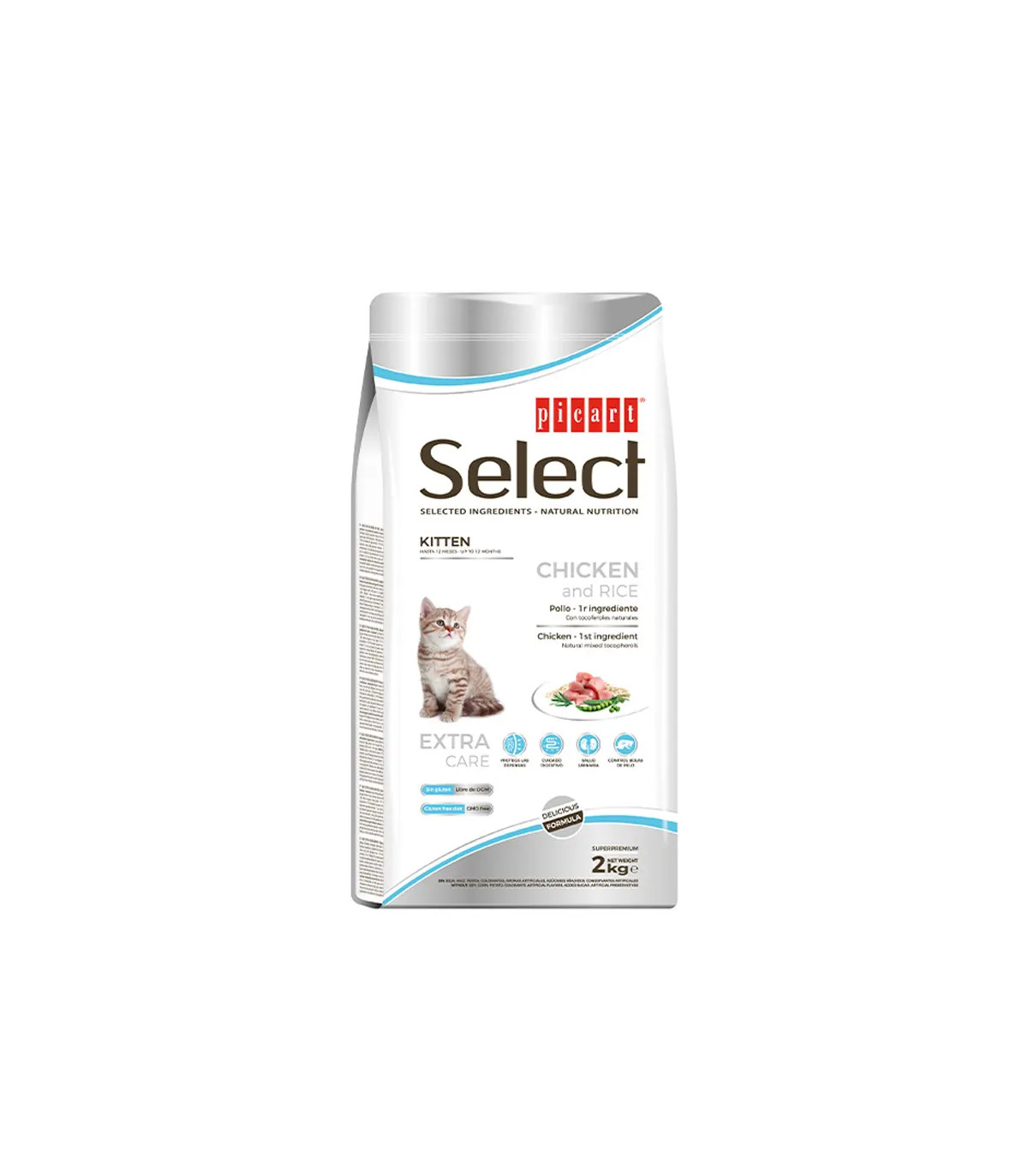 Picart Select 2kg: alimento completo para gatitos (kitten) con pollo y arroz.
