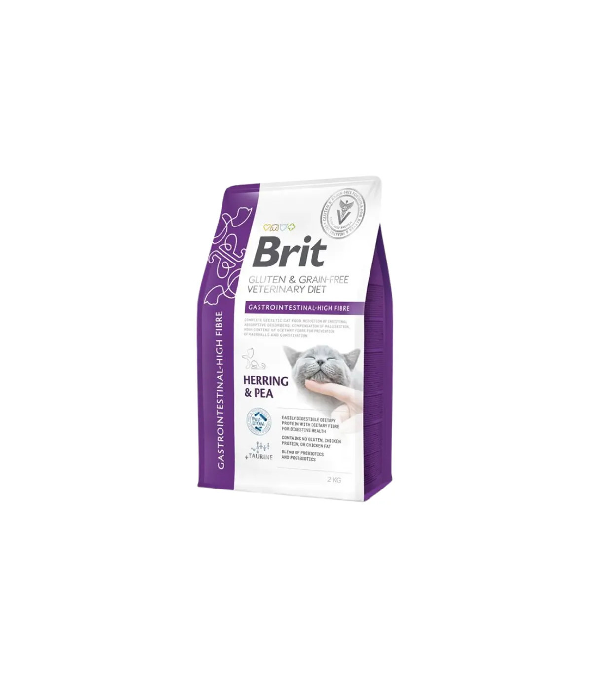 Brit Veterinary Diet Gastrointestinal High Fibre 2kg: alimento terapéutico completo para gatos con arenque.