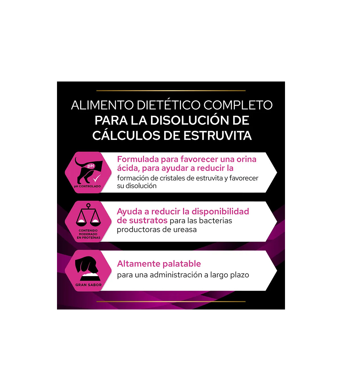 É especificamente projetado para estruvita (dissolução e prevenção) e Oxalato de cálcio (prevenção). Para outros tipos de cálculos (como urate ou cistina), existem diferentes dietas. Sempre consulte seu veterinário.