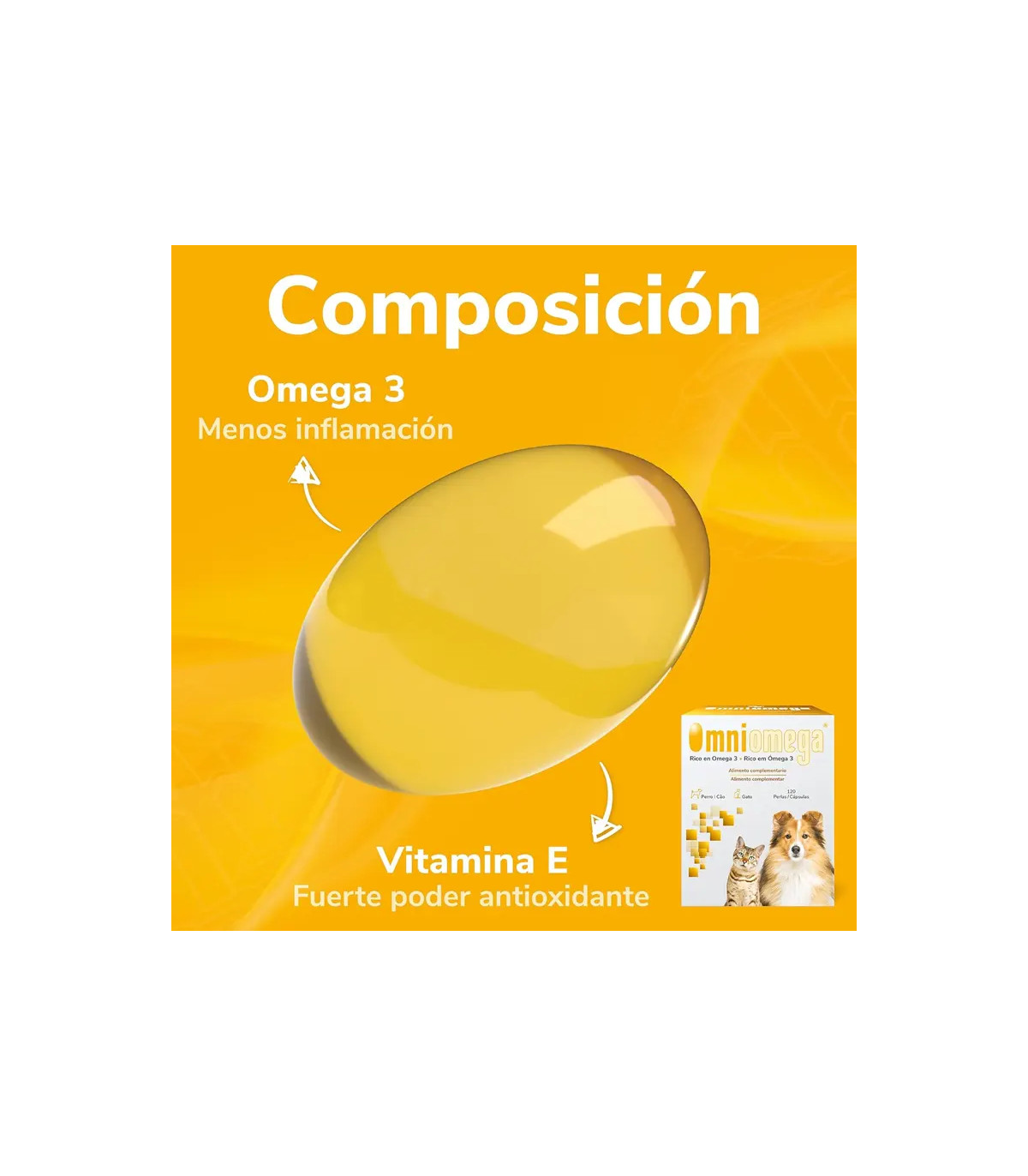 Combinado com o poder antioxidante da vitamina E, Omniomega é a pérola diária de saúde que se reflete em um animal mais vital, com um casaco espetacular e defesas mais fortes.