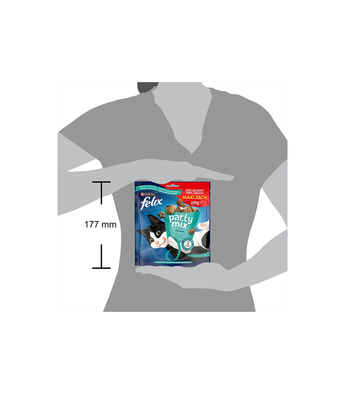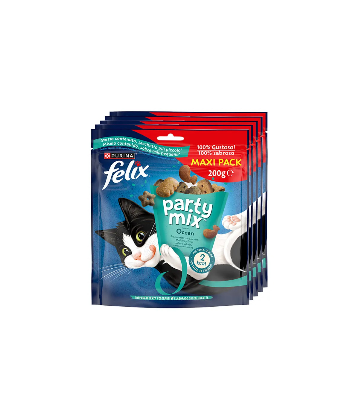 Para gatos que sonham com o oceano, a festa de sabor final chega. Felix Party Mix Ocean É uma seleção colorida e crocante de guloseimas que capta a essência do mar para deleitar seu pequeno felino. Compartilhe mais momentos de jogo e cumplicidade com uma mistura irresistível que despertará seu instinto mais impertinente.
