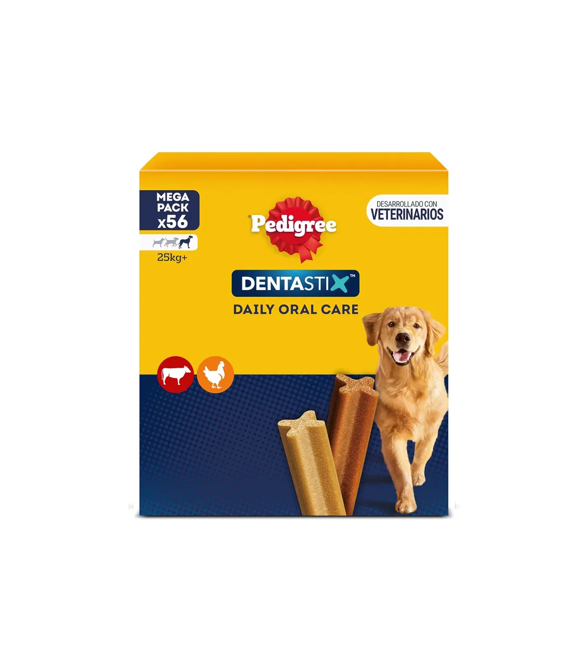 Pacote Bimensual Pedigree Damasx (56 varas) para Cães grandes (+25 kg). A solução mais econômica e robusta para garantir 8 semanas de cuidados bucais Jornal. É cientificamente comprovado do que seu uso diário Reduz o tártaro em 80% Graças à sua forma X e sua textura adaptada a mandíbulas fortes. Um lanche saudável e com baixo teor de gordura e sem açúcar adicionados para um Higiene dental total. A compra mais inteligente para o seu grande parceiro!