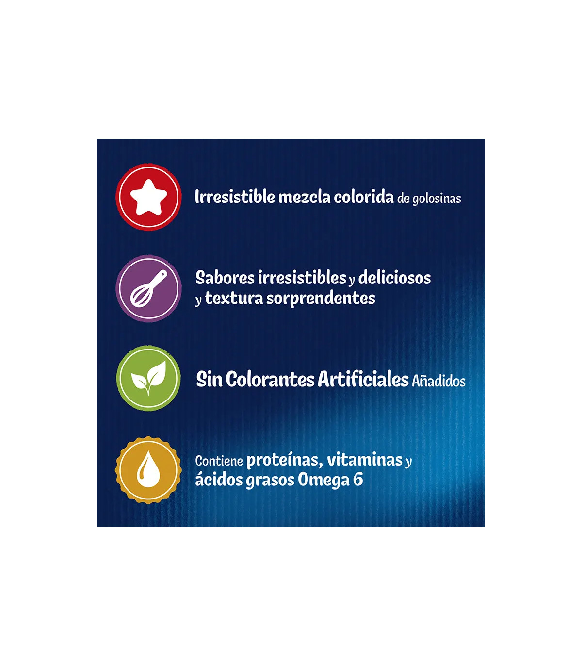 Isso não é nenhum lanche. É uma mistura colorida e crocante de guloseimas com os irresistíveis sabores de frango, fígado e peru. Mas a diversão não está em desacordo com a saúde: cada prêmio é enriquecido com nutrientes essenciais para que você possa cuidar do seu gato sem preocupações.