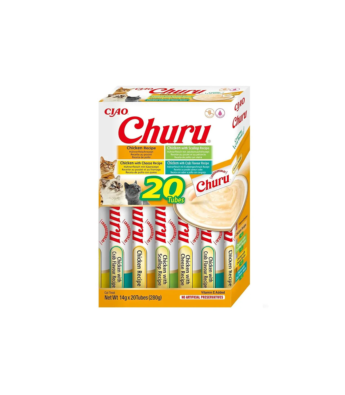 - Frescura garantida: Um formato menor que é consumido mais rápido, garantindo que cada churu esteja em seu ótimo ponto de frescura.