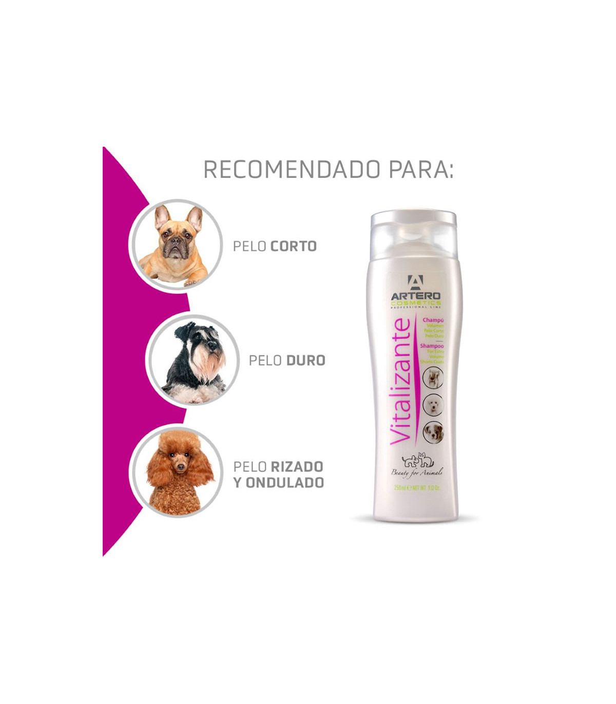 Descubra a fórmula secreta de ARTERO Para manter a saúde e a beleza do seu animal de estimação. Nosso xampu vitalizante de 250ml é uma mistura perfeita de ingredientes naturais e benefícios importantes para o melhor cuidado de pele.
