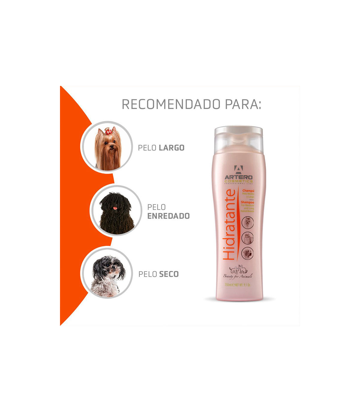 - Nutrientes hidratantes para um casaco suave e brilhante
